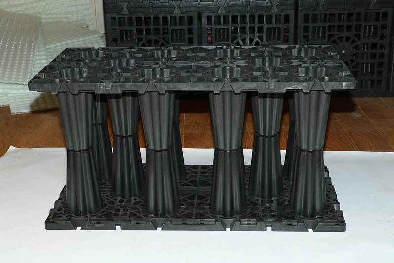 防排水保護板獨有的凹凸中空立筋結構,可以有效快速的導出地下防水層積水,地下滲出的水順著地下架空層排水板的空間將水引流至四周盲溝,再通過盲溝后引流至集水坑。從而大大的減少甚至消除了防水層的靜水壓,通過這種主動導水的原理達到主動防水的效果。有效的保護構筑物和防水層,并且抵抗土壤中的各種酸堿和植物的根刺還有防潮降噪的功能。對土建施工周期及構筑物的正常使用和壽命具有重要的作用。